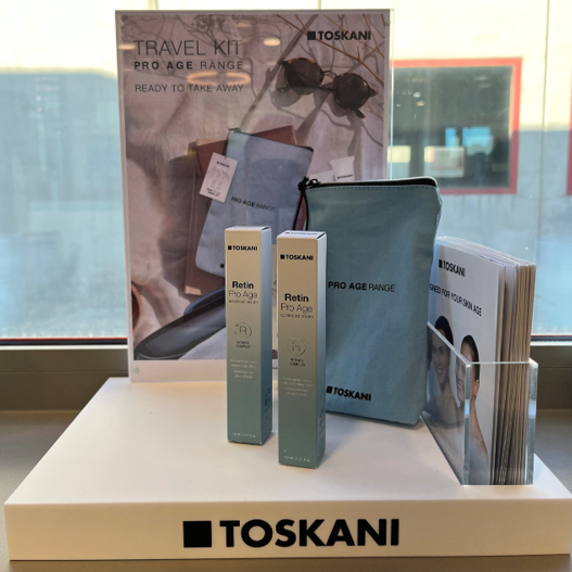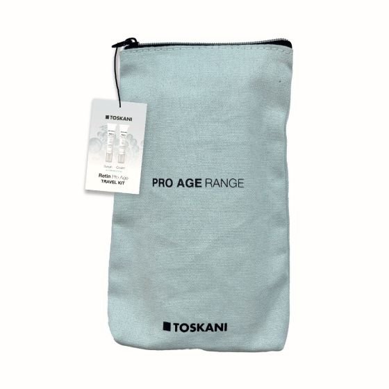 De Retin Pro Age lijn is ook beschikbaar in travelsize. Het opbergtasje bevat een dagelijkse serum en crème die de effecten van huidveroudering, wat veroorzaakt wordt door interne -en externe factoren, minimaliseert. De retinol-achtige ingrediënten van plantaardige oorsprong, gebaseerd op liposomen, verbeteren en verstevigen de huid. Het strijkt rimpels glad en stimuleert de collageenproductie.